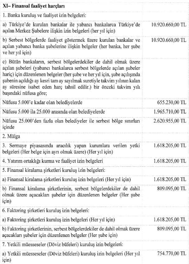 MADDE 1- (1) 2/7/1964 tarihli ve 492 sayılı Harçlar Kanununa bağlı (8) sayılı tarifenin “XI- Finansal faaliyet harçları” başlıklı bölümünde yer alan maktu harç tutarları aşağıdaki şekilde belirlenmiştir.